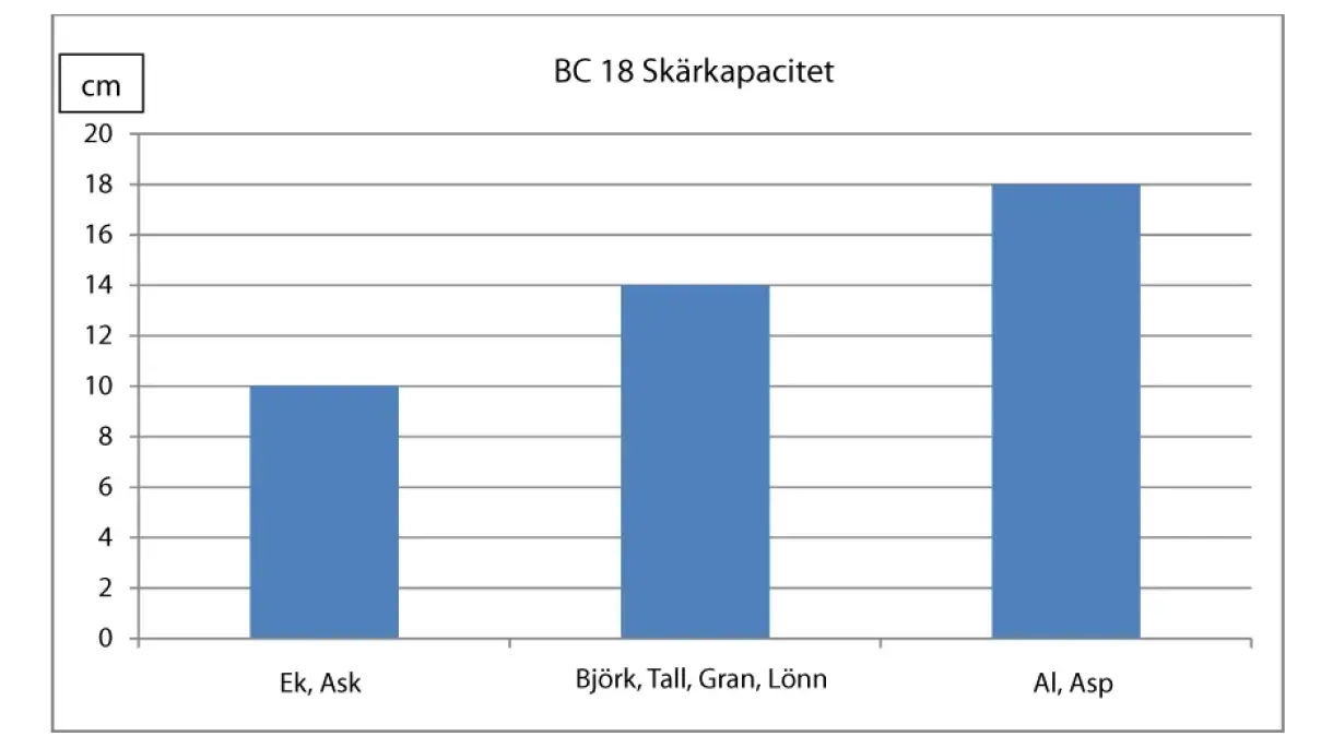 Klippen är tänkt att hantera träd på en diameter på maximalt 18 cm vid kapningspunkten. Det finns många aspekter som kan påverka möjligheten att kapa träd på 18 cm exempelvis träslaget, fuktigheten utomhustemperaturen men också om trädet är fryst.
