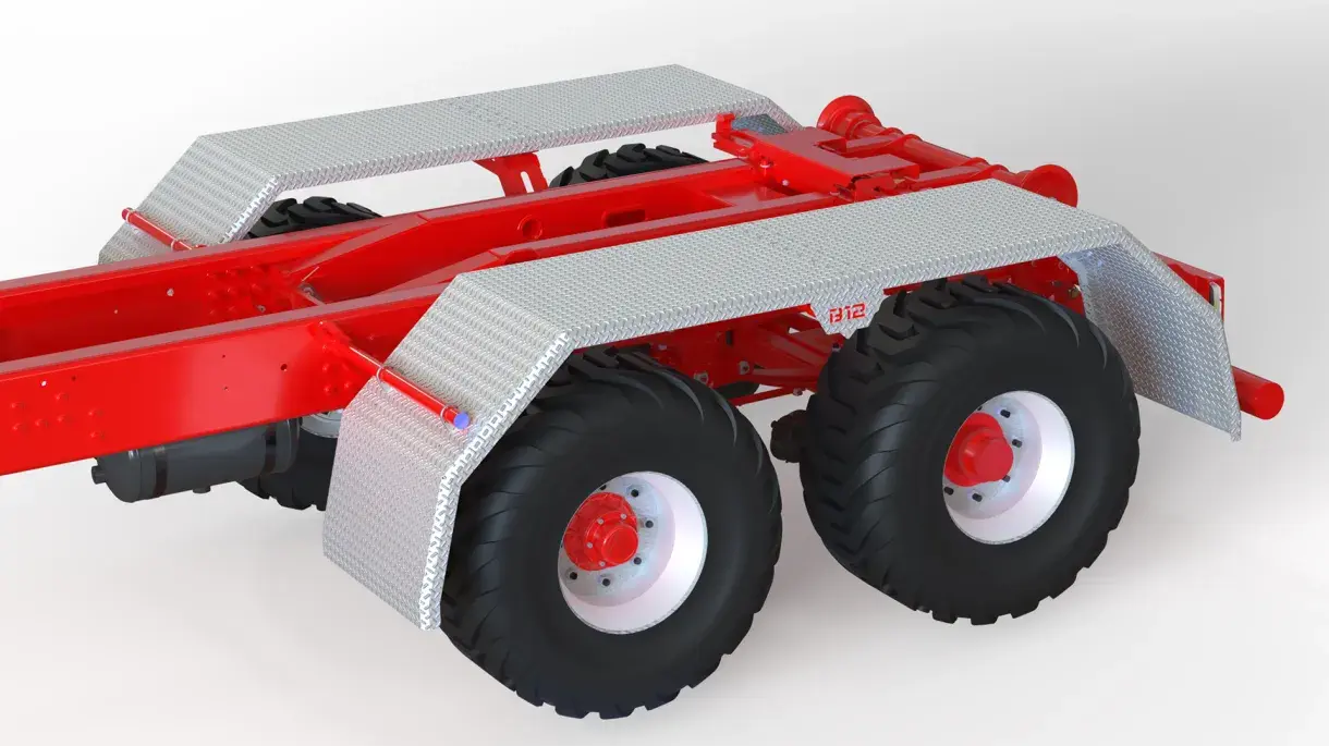 Vagnen kan utrustas med aluminiumskärmar.