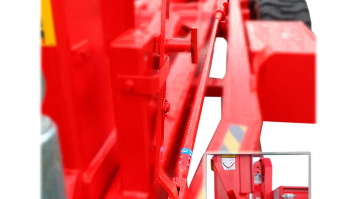 Dieses Modell ist mit einer mechanischen Steuerung für Kipp- und Wechselvorgänge ausgestattet. Mit dem Steuerhebel wählen Sie zwischen Kippen und Wechseln. Der Steuerhebel befindet sich an einer gut erreichbaren Stellen am Anhänger und ist einfach zu bedienen. Es ist außerdem mit Federsicherung ausgestattet, die an der richtigen Stelle einrastet.