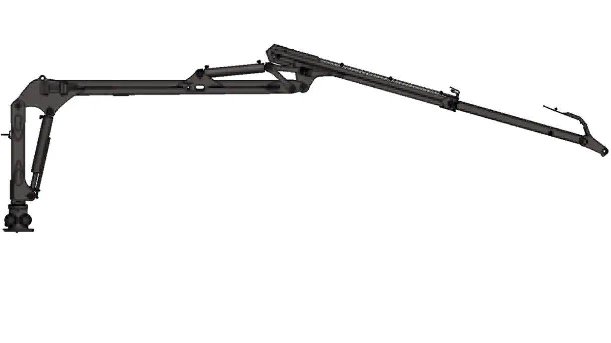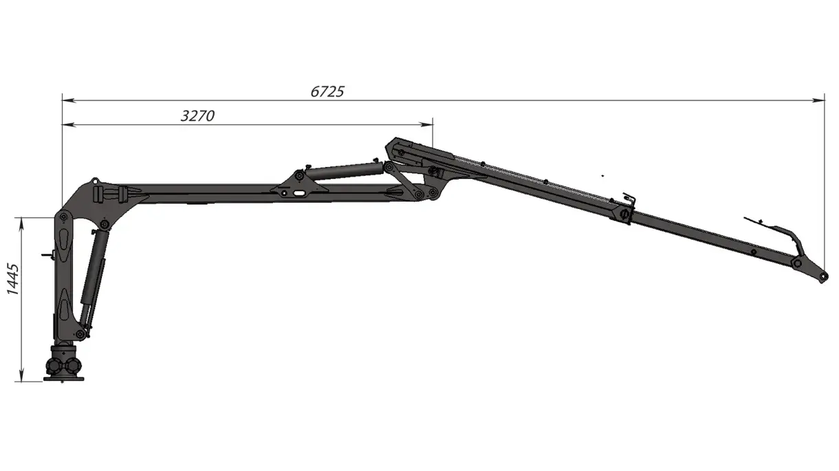 Der Kran verfügt über eine Reichweite von 6,7 m und eine Verlängerung von 1,45 m. Er hat eine Hubkraft bei maximaler Reichweite von 490 kg (ohne Greifer, Rotator und Verbindung).