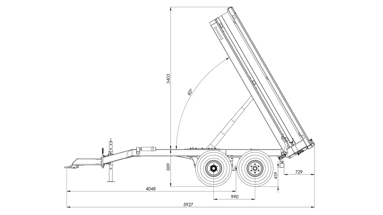 The trailer as well as the dumper body is produced in high strength steel/ wears steel which results in a durable trailer with higher payload. At the same time we have reduced the weight of the trailer to 1815kg. BIGAB construction trailer BT-8 is in standard equipped with 400/60- 15,5 tires, top/side hanging door, adjustable bogie and drawbar. Hydraulic flap down rear door is available as option. The front head board is raised to offer load protection too.