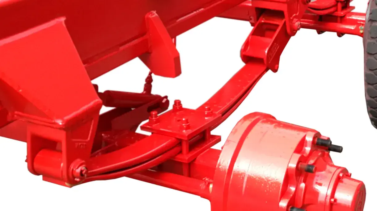 This model can be equipped with a tandem suspension. The axels can be equipped with hydraulic brakes, air brakes, load-sensing brakes, and air/oil combination brakes. The suspension is available with fixed or steering axles.