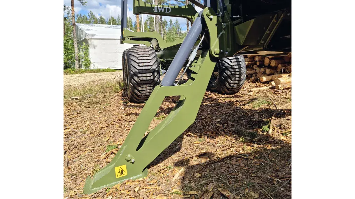The trailer is equipped with powerful hydraulic folding legs, especially designed for T 17 and T 14 G2. The hydraulic folding legs lead to a better view then they are lowered. The hydraulic folding legs also reach further out from the actual longitude centre line of the carriage than the conventional telescopic support legs. By so, it provides a more stable trailer especially when the trailer is loaded.