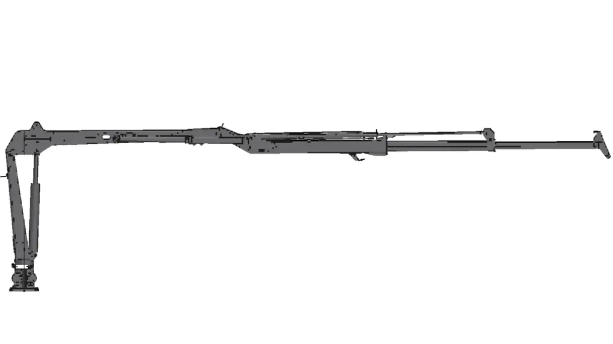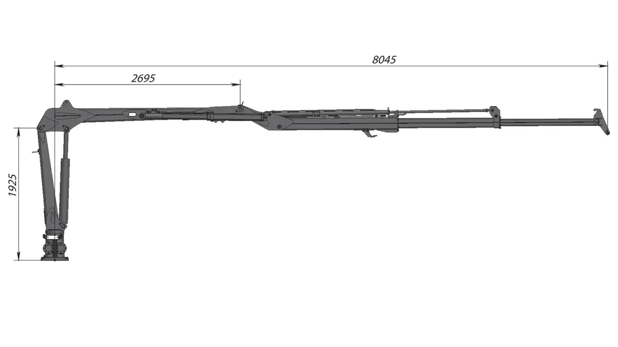 Z - kranen har en räckvidd på 8.0 m med ett dubbelteleskop på 2.65 m. Kranen lyfter på full längd 590kg exkl. grip och rotator.