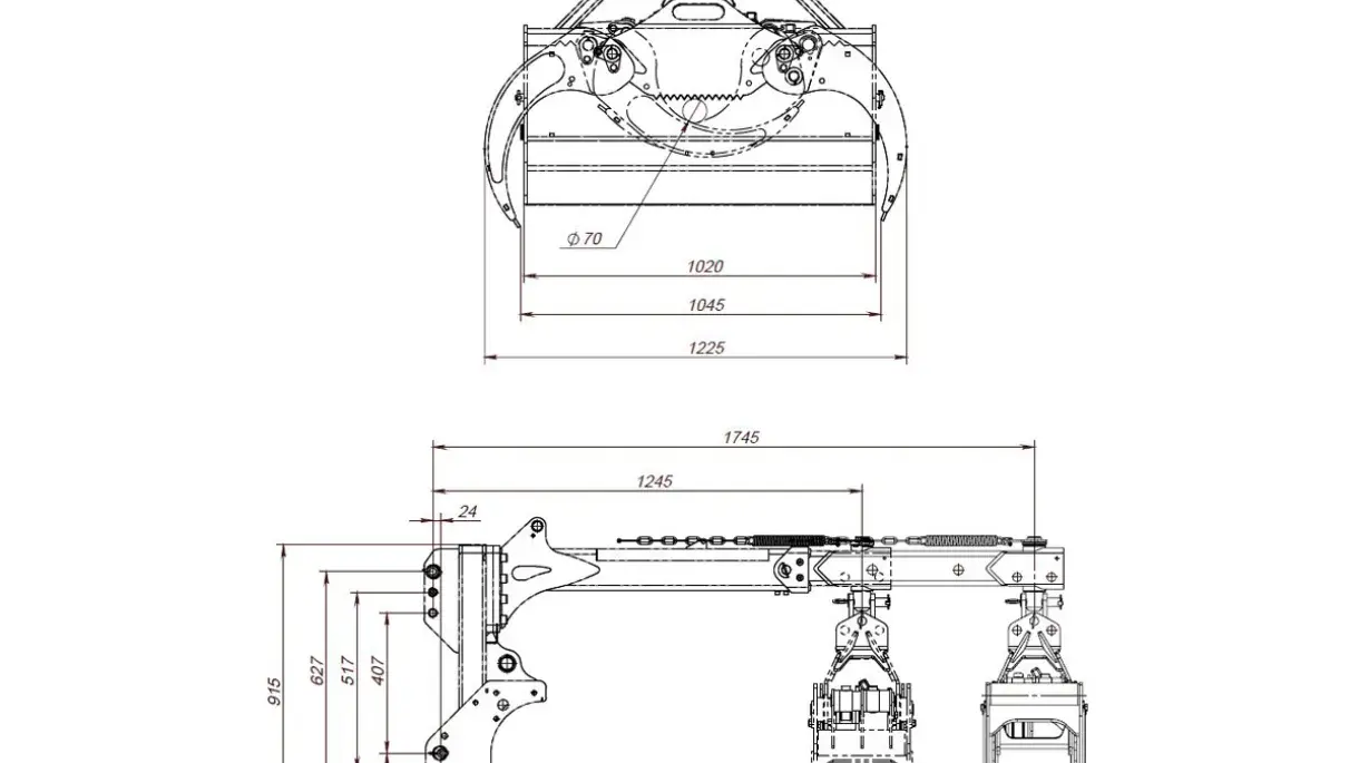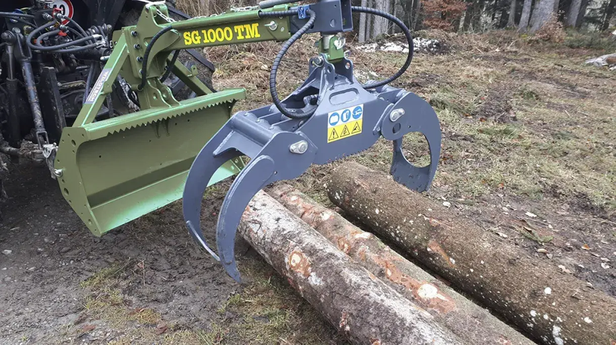 Man kan både släpa och lyfta med sig timmerstocken beroende på längd och situation i skogen. Den speciella gripen öppnar 1 meter och väger 87 kg och är gjord i höghållfasthetsstål av bästa kvalitet.